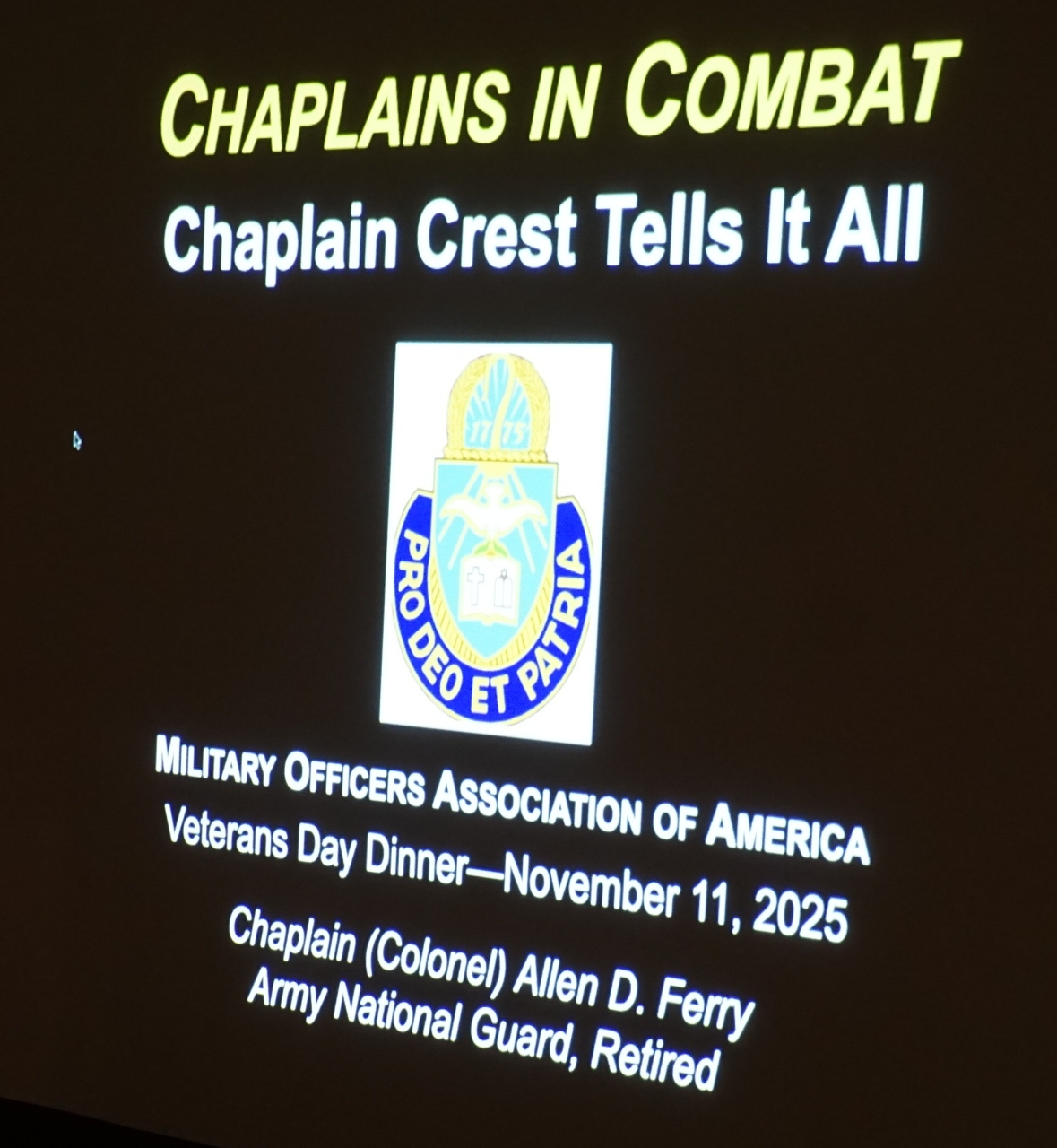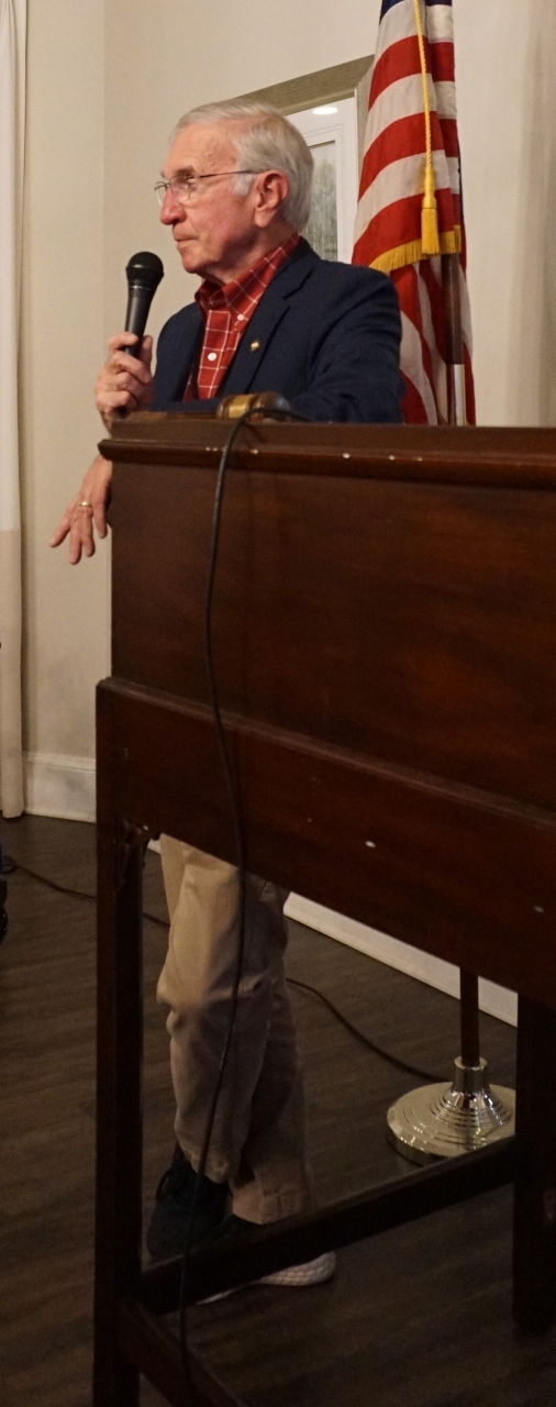 Warren Boyer, 1sLt, USMCR (Vet) was our Seven Minute member speaker with very amusing anecdotes of his times as a radar officer pitting Marine aircraft against each other and sometimes the Navy. Even a disrespectful helo pilot who ended up as his dinner partner, our own Jerry Johnson, Col, USMCR (Ret).