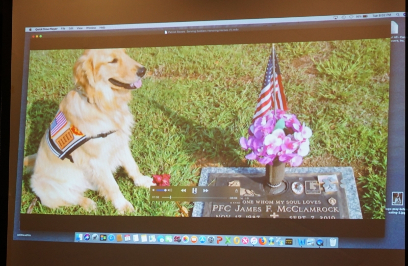 David's presentation was moving and emotionally charged as he reviewed the histories of the PTSD vets with dogs, and the history of those vets after whom the dogs are named. The tasks and abilities of the Golden Retrievers specific to this service left many of us in awe.